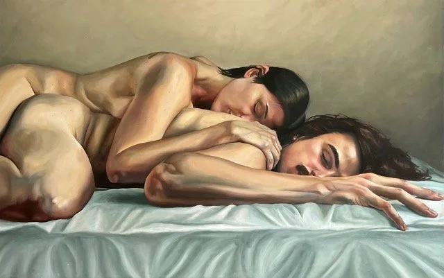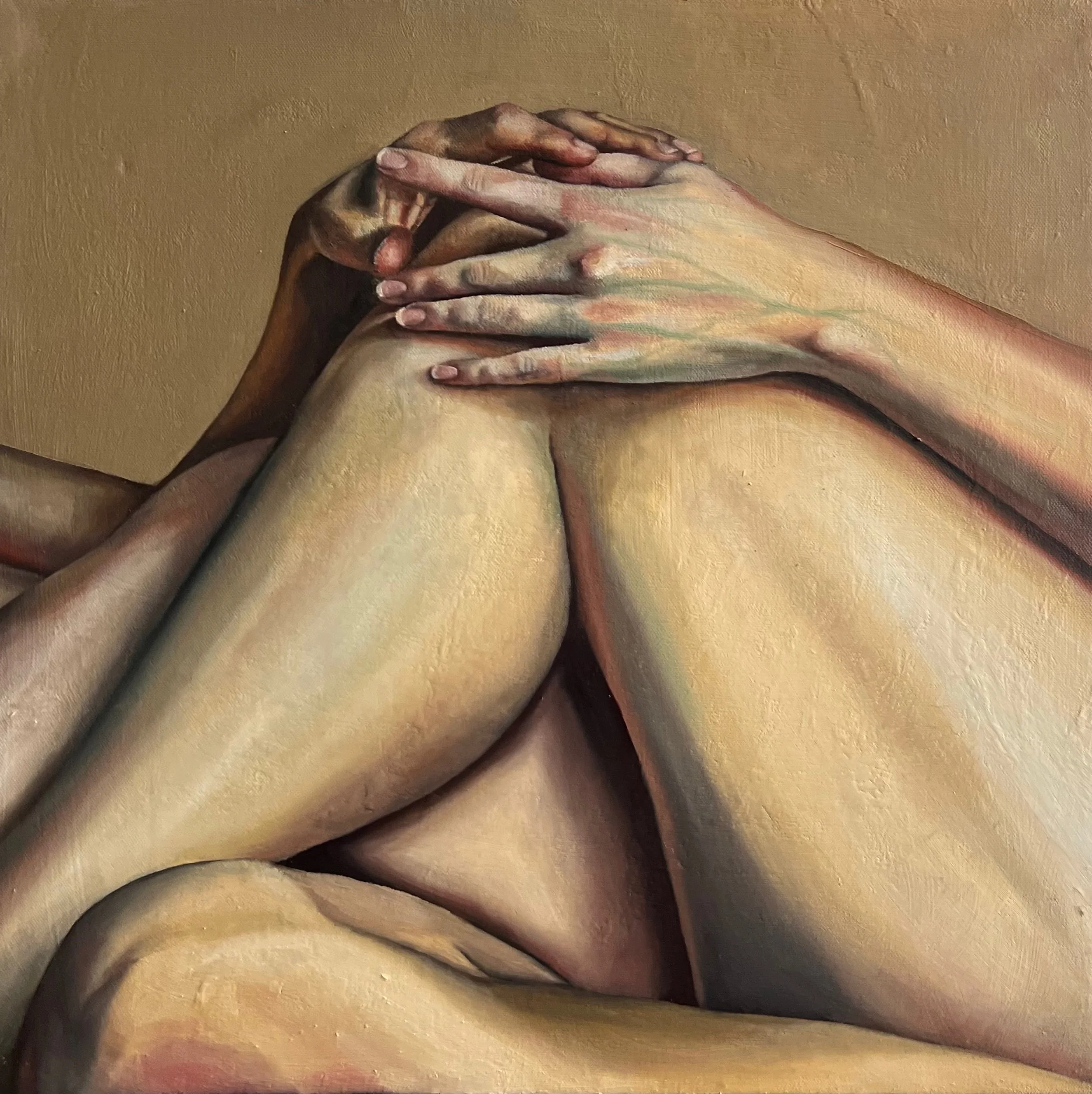 Her works, often self-portraits, are at once dreamy, vulnerable, and challenging. Through them, she delves into her own experiences and inner life, using painting as a tool of self-exploration and communication. By weaving personal narratives together with symbols and references from cultural history, she creates a dialogue between past and present, intimacy and universality, expression and silence. Viewers are invited to mirror themselves in her imagery, entering spaces that blur the line between the individual and the collective human condition.
